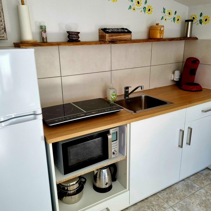 Actualmente hay 2 apartamentos listos para alquilar, para garantizar paz y tranquilidad durante la temporada, las obras de construcción del tercer apartamento y de la casa cueva comenzarán en otoño. Se espera que se abran para alquiler a finales de 2023 y principios de 2024.