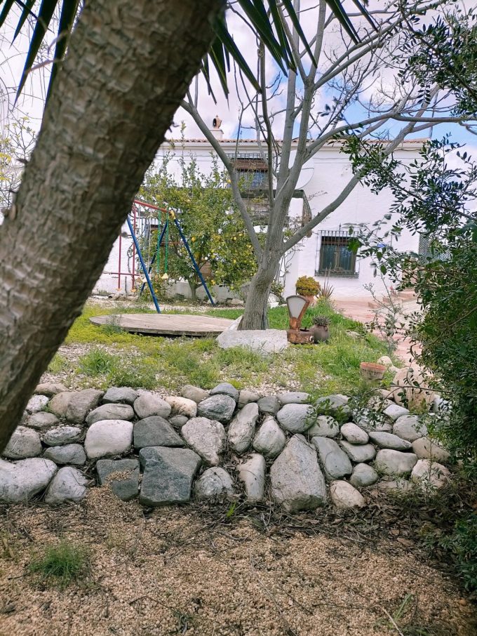 También tiene una parcela agrícola en la que hay tres grandes olivos, y varios árboles más que está atravesada por una acequia de riego tradicional.