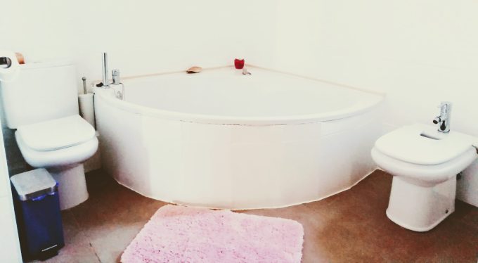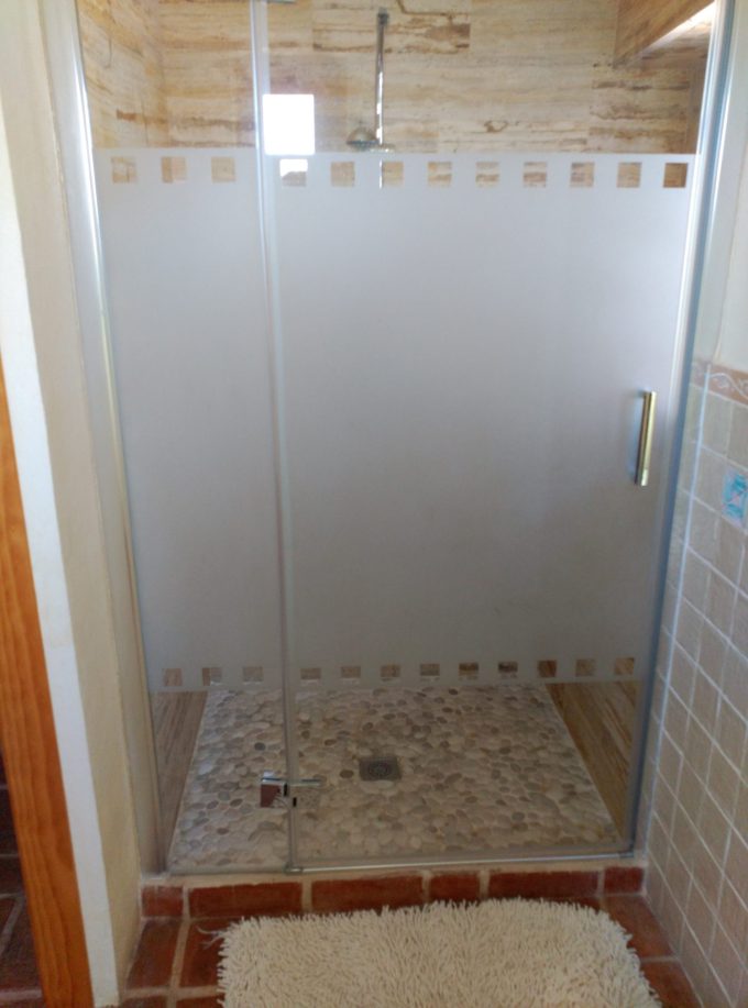 Con el agua de la ducha y el baño de arriba se riegan directamente los árboles de la parcela, y el resto de aguas de la vivienda las depuramos con una depuradora simbiótica construida por nosotros para reciclar toda el agua de la casa para regar árboles de la parcela agrícola.
