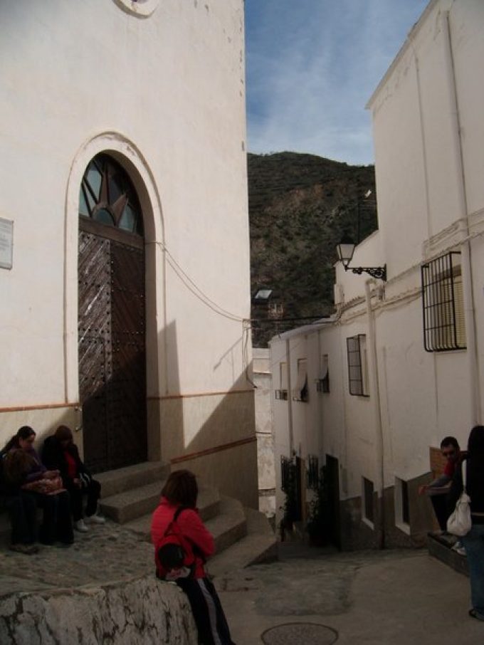La Iglesia de San Sebastián es una estructura de nave única cubierta por bóveda de cañón, y la cubierta con viguería de pino del país y teja árabe.