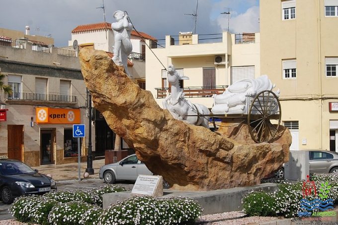Esta escultura, de 5 metros de largo por 2 de ancho, preside la Plaza Nueva del municipio y homenajea la labor y la figura del arrieros como uno de los elementos fundamentales del desarrollo económico de Albox.