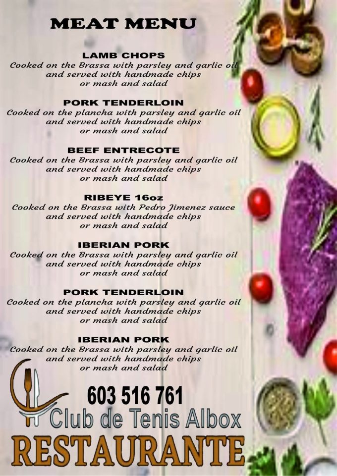En el Restaurante Club de Tenis Albox te invitamos a disfrutar de una experiencia gastronómica basada en ingredientes frescos y una cocina honesta. Nuestra carta está especializada en carnes y pescados preparados a la brasa o a la plancha, con el sabor auténtico que solo los buenos productos pueden ofrecer.