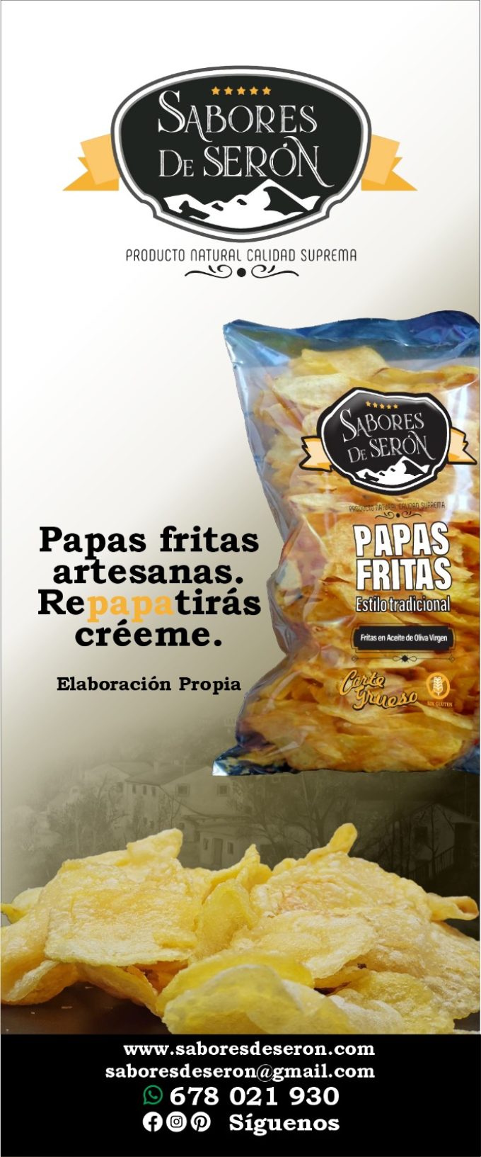 Hoy he probado sus patatas fritas Sabores de Seron y me ha encantado su sabor y lo crujientes q estan. Las compré en una tienda de San Juan de Terreros pero tanto este pueblo como Serón me vienen muy lejos para ir a por más.