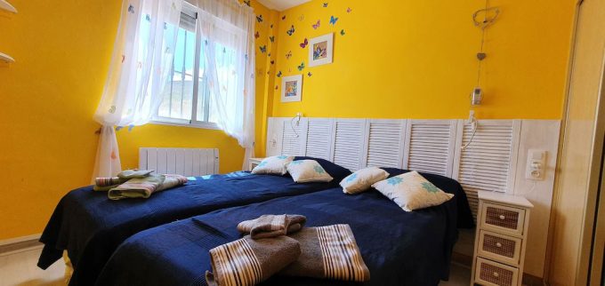 Este alojamiento consta de 4 dormitorios; dos con cama de matrimonio y otros dos con dos camas individuales y cada una de ellas con aire acondicionado.